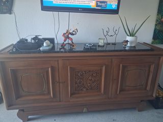 Bonito mueble de salón de madera maciza color marrón. Ideal para colocar la televisión y otros elementos decorativos. - Perfecto estado de conservación. - Diseño elegante y funcional. - Gran capacidad de almacenaje.