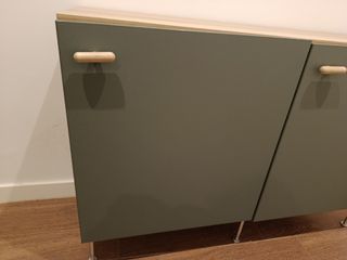 Mueble de salón de estilo moderno con acabado en madera. Está en perfecto estado, comprado hace unos meses. Tres puertas de almacenaje. Medidas 1,80x 41,5.