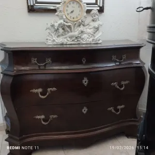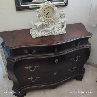 Elegante mueble vintage de estilo clásico con encimera de mármol natural. Pieza muy decorativa y con gran presencia, ideal como aparador, consola de entrada o mueble auxiliar en salón. Destaca por sus columnas laterales talladas, los detalles ornamentales y la figura central en relieve, que le aportan un carácter único. - Encimera de mármol original en muy buen estado - Madera maciza con acabados tallados - Diseño clásico / neoclásico muy decorativo - Gran capacidad de almacenamiento interior Perfecto para ambientes vintage, clásicos o como pieza protagonista en decoración. - Recogida en mano. - Se escuchan ofertas razonables.