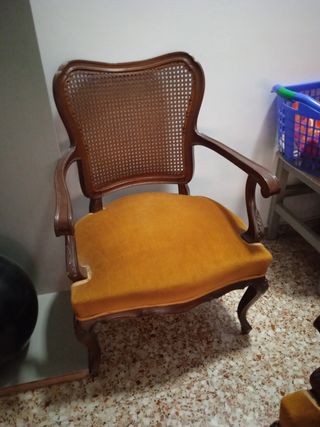 Elegante conjunto de cuatro sillones vintage. Se encuentran en perfecto estado y lucen un diseño encantador. - Tapicería floral en tonos beige y marrón. - Diseño curvado y botones decorativos. - Ideales para añadir un toque retro a tu hogar. 8€ si te llevas 2 unidades (5€/uni) 14€ si te llevas 4 unidades (3.75€/uni)