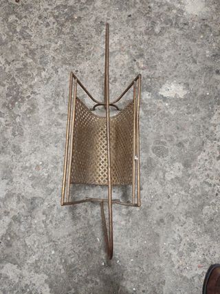 Preciosa perchero antiguo de pared. Ideal para darle un toque vintage a tu hogar. - Diseño elegante y clásico. - Tres ganchos de metal. - Base de madera maciza con detalles tallados.