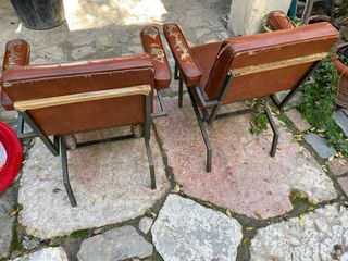 Se venden sillones de los años 60 fabricados por J.Antonio Bailén, fabricados en Baena (Córdoba) en el estado que se ven en las imágenes. De hierros y pintura están perfectamente, se puede ver lo robustos y antiguos que son, pero la polipiel estaba endurecida y se han estado usando últimamente y se ha agrietado y desconchado, nada que un buen retapizado no pueda arreglar, son imposibles de encontrar otros iguales, super cómodos y no ocupan apenas espacio. No se envían, sería para entrega en mano en Baena.