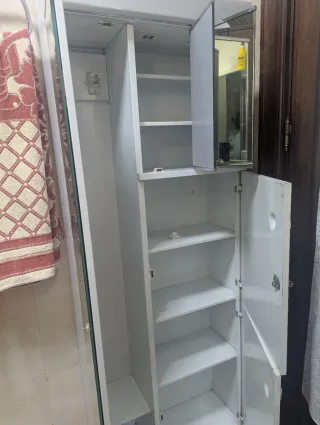 Mueble baño blanco, alto, con espejos y baldas. 1975 Mucho almacenaje 4 Puertas (Dos tiradores o pomos están rotos por el borde (se ve en fotos) Alguna balda está un poco despintada. La luz está fundida. Buem estado. Precio: 35€ RECOGER RN DOMICILIO Medidas: Alto: 1,72 cm. Ancho: 60 cm. Fondo: 24 cm.