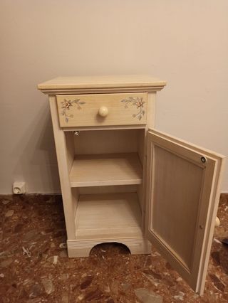 Precioso armario de baño de madera, en color blanco. Se encuentra en buen estado. - Dos puertas. - Un cajón. - Tiradores de estilo clásico.