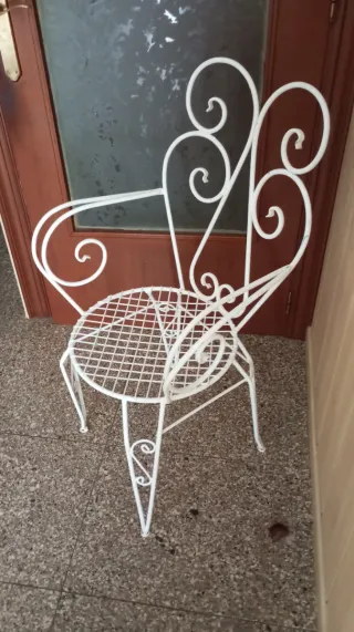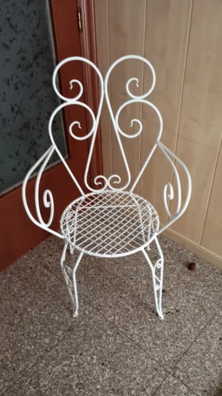 Preciosa silla antigua de forja con un diseño vintage. Pintada blanca. Se entrega limpia En perfectas condiciones silla Roces según foto por pintura - Estilo decorativo. - Ideal para exteriores o interiores.