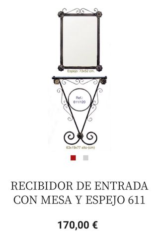 Conjunto de recibidor de entrada con mesa y espejo. - Medidas del espejo: 73x52 cm. - Medidas del recibidor: 63x19x77 cm. - Referencia: 611/120.