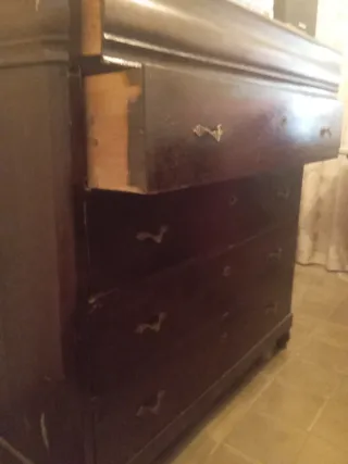 Vendo mueble tipo sinfonier de madera maciza en color oscuro. Es un mueble muy robusto y con gran capacidad de almacenaje gracias a sus 6 cajones. Detalles: Material: Madera de calidad (no es aglomerado). Recogida: Arcos de la Frontera. No se realizan envíos debido al peso y volumen del mueble
