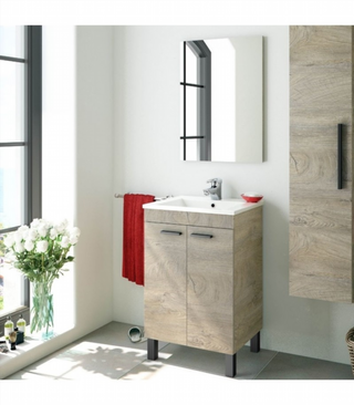 Mueble De Baño 2 Puertas Y Espejo Con Lavabo. Rob