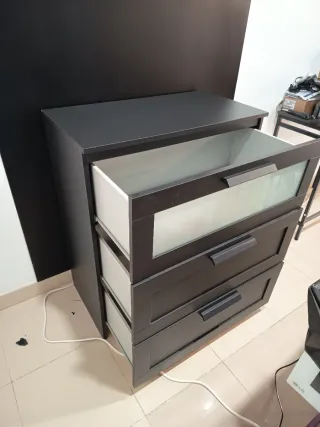 Mueble, cajonera de diseño moderno, ideal para organizar tus pertenencias. - Tres cajones. - Acabado en madera oscura. - lo puede venir aver sin compromiso -Estamos ubicados en el metro de collblanc L5, L10s, L9s. Barcelona. -Negociable.