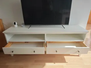 Mueble de televisión Idanas de Ikea en color blanco. Cuenta con dos cajones y dos huecos. Está muy bien cuidado. Tiene muy poco tiempo de uso. Lo vendo por mudanza. - Diseño moderno y funcional. - Amplio espacio de almacenamiento.