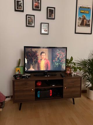 Mueble de TV para comedor con acabado en madera de la marca Maisons du Monde. Está nuevo sin estrenar, recién montado hace 3 días. Lo compramos a mitad de reforma y al montarlo vimos que las medidas no nos encajan bien. Detalles - Tres puertas con tiradores ocultos integrados. - Estructura con detalles acanalados. - Minimalista y con diseño moderno. - Muy práctico y espacioso. Se vende montado, así que un problema menos :)))