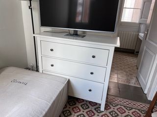 Mueble de televisión moderno y funcional. - Diseño limpio y minimalista. - Amplio espacio de almacenamiento. - Acabado en blanco. Está en muy buen estado. Puedo enviar mas fotos si se requiere. Zona rambla poblenou-metro llacuna.