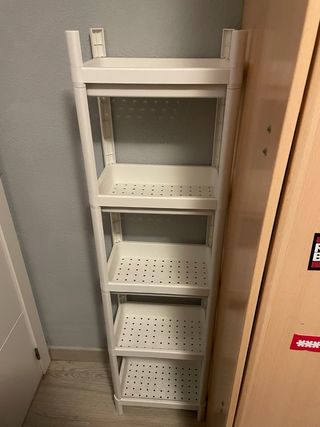 Estantería desmontable de 5 baldas en Perfecto estado ideal para guardar todo tipo de cosas y colocarla tanto como mueble de baño de cocina o incluso en la habitación. - Material: Plástico. - Color: Beige. - Hago envio.