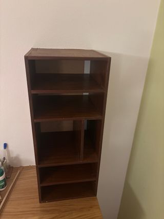 Práctico mueble organizador de madera con varios compartimentos. - Diseño vertical. - Ideal para libros, decoración o pequeños objetos.
