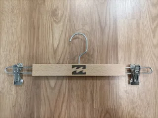 Lote de 10 perchas de madera con pinzas. - Diseño elegante y natural, ideal para particular, tienda. - Para pantalones, bermudas, shorts, faldas y similares (largo máximo 35 cms). Posibilidad de comprar más unidades a mejor precio. Dispongo de otras perchas de madera "normales" en mi perfil, para ropa de adulto y junior y/o de mujer y mobiliario para negocio. Consúltame sin compromiso.