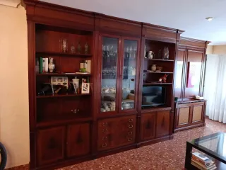 Ubicación : La Vall de Uxó ✨ Mueble de salón clásico de madera con vitrinas ✨ Mueble de gran calidad y presencia, ideal para salones amplios. Cuenta con vitrinas laterales con puertas de cristal, armarios inferiores, estanterías y una elegante zona central con marco tipo chimenea decorativa (no funcional). Mueble robusto, pesado y modular, en buen estado. Perfecto para almacenaje y decoración. ⚠️ IMPORTANTE El comprador debe venir a desmontarlo y recogerlo, aunque puedo ayudar en el desmontaje. Se recomienda venir al menos dos personas. No se realizan envíos. En mi perfil mas muebles a juego