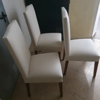 Se venden seis sillas de comedor con estructura de madera y tapizado. Medida,alto 45,fondo 65×41 - Diseño elegante. - Tapizado en tela. - Patas de madera.