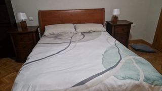Conjunto de muebles de madera para dormitorio. - Cama de 1.35 metros. - Dos mesitas de noche. - Cómoda. - Acabado en madera.