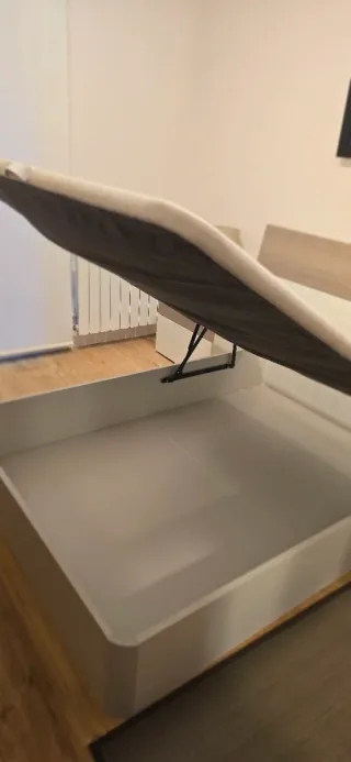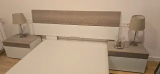 Conjunto de dormitorio en color blanco y gris, tamaño 135cm. Se encuentra en perfecto estado, porque ha sido poco utilizado (habitación invitados).Medidas en las fotos...se entrega canapé desmontado. - Cabecero con diseño moderno. - Mesitas de noche a juego.