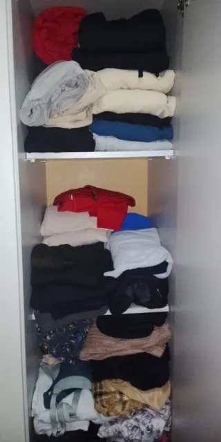 Mueble vestidor con cajoneras y cestas metálicas tiene guías para poner puertas está desmontado