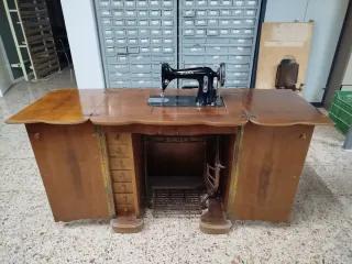 Máquina de coser Singer antigua con mueble.
