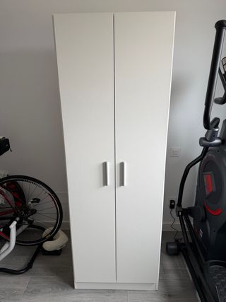 Mueble alto de diseño moderno, ideal para organizar escobas y otros utensilios de limpieza. - Fabricado en melamina. - Acabado en color blanco.