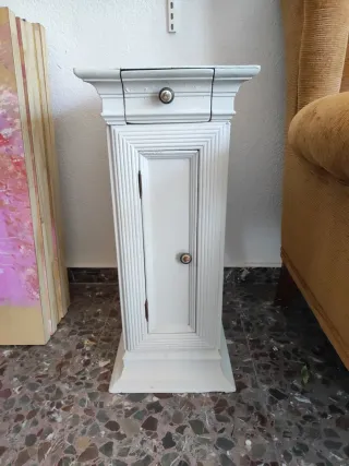 Mueble tipo columna con un diseño clásico y elegante. Ideal para añadir un toque decorativo a cualquier estancia. - Acabado en blanco. - Fabricado en madera.
