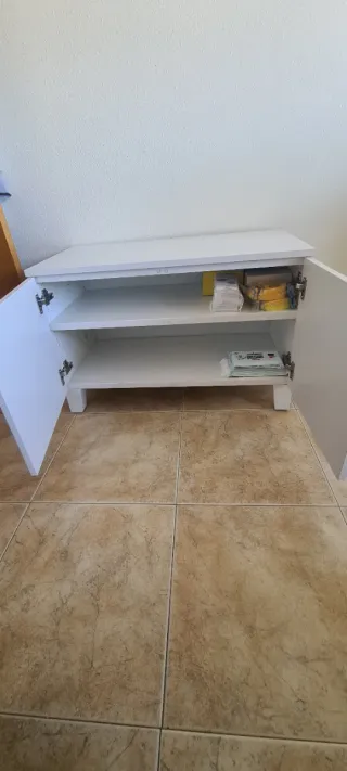 ¡¡¡¡¡PRECIO NEGOCIABLE!!!!! Armario bajo multifuncional con un diseño moderno y limpio. Sus dos puertas ofrecen un acceso práctico. Puedes ponerlo en la entrada tipo zapatero, en la habitacion de los niños para guardar juguetes, en la lavanderia para productos de limpieza...etc. Las patas son desmontables y puedes poner las que tu quieras, más altas, más bajas, de colores..etc. Las que hay actualmente dejan pasar el robot aspirador perfectamente. - Acabado en color blanco. - Fabricado en madera. Tiene algunas pequeñas marquitas, nosotros lo teniamos en la entrada y esas marquitas es de dejar el bolso. Se ven en las fotos.