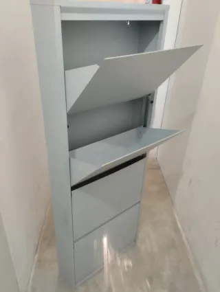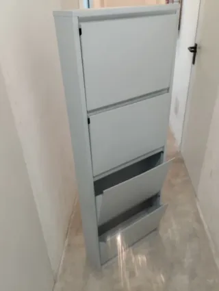 Zapatero de diseño moderno con varios compartimentos abatibles. 1'40 x 0'15 x 0'50 - Estructura delgada y alta. - Ideal para organizar calzado en espacios reducidos.