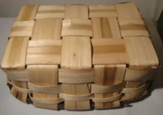 Cesta tejida de mimbre y madera