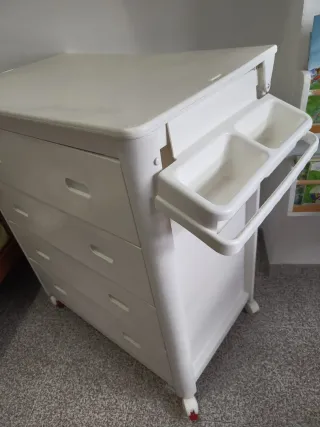 Mueble cambiador con bañera incorporada. Práctico y funcional para el cuidado del bebé. - Estructura de plástico resistente. - Ruedas para fácil movilidad.