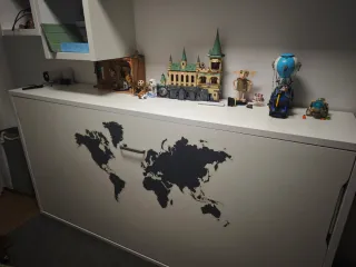 Cama abatible de alta calidad, no tiene ningún desperfecto. Ideal para optimizar el espacio. - Diseño de mapa del mundo, es una pegatina - Mecanismo de apertura y cierre.