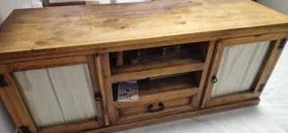 Mueble bajo de estilo Rondeño con un diseño clásico y elegante + REGALO de munlebl Mini con unas dimensiones de: 110 cm. dr ancho, 70 cm. de profundidad y 40 cm. de alto. Urge vender por mudanza - Acabado en madera natural. - Puerta con cristal. - Tiradores dorados.