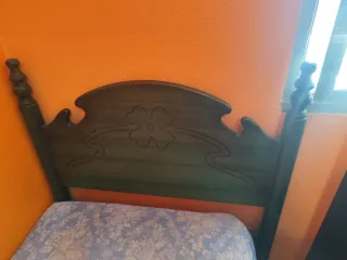 Mueble de dormitorio de madera maciza. Consta de cabecero de 1,35cm, dos mesillas de noche y una cómoda. ** Solo recogida **