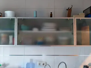 Muebles altos cocina cristal y metal