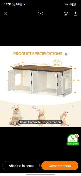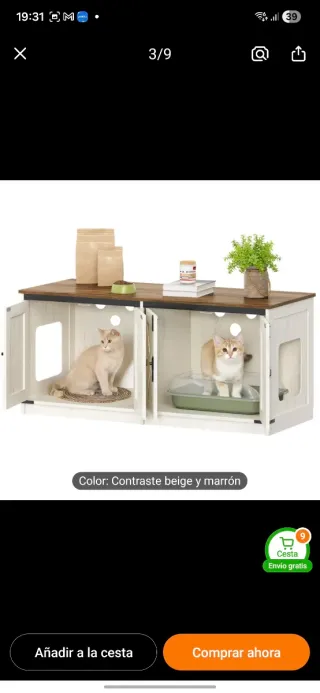 Mueble funcional para gatos con un diseño moderno. Ideal para mantener su espacio organizado. - Acabado en contraste beige y marrón. - Puertas frontales para acceso. - Compartimentos interiores.
