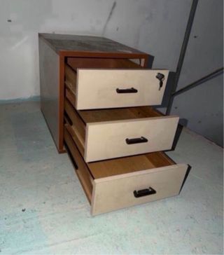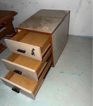 Mueble de almacenaje con varios cajones. Cajonera de madera con un diseño clásico y funcional. Y cerradura en el cajon de arriba, la base tiene un desconchon que se pone una tapa y queda bie por lo demas en perfecto estado Mide ; ancho 42 cm Fonfo 57 cm Alto 49 cm - Diseño funcional. - Acabado en tonos beige y marrón.