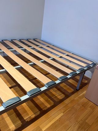 Base de cama con lamas de madera. - Estructura metálica. - Lamas de madera.