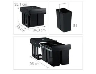 OJO - Tiene un pivote de sujeción de la tapa roto, nada importante, por lo demás nuevo, ver fotos. Relaxdays Cubo de basura integrado de 4 compartimentos, bote de basura de cocina extraíble para armario base, ABS, negro, 35,1 x 34,3 x 48 cm, 10031541 Tamaño total: 35,1 x 34,3 x 48 cm aprox. (alto x ancho x fondo) Extraído completamente: 95 cm aprox. (fondo) Volumen del contenedor: 8 L cada uno aprox. Para armarios de mín. 40 cm de ancho Peso total: 4,8 kg aprox. Material: plástico (ABS, PP) y metal Color: negro P20