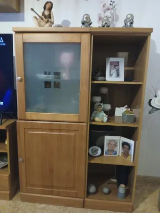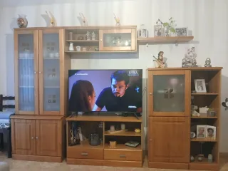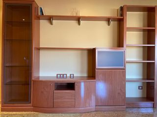 Mueble de salón completo, está en muy buen estado. Se vende barato por cambio a uno nuevo. Está en Zaragoza, no se envía, no sé desmonta, no sé baja. El que lo quiera tiene que venir a desmontarlo y bajarlo, no cabrá todo en el ascensor, es un cuarto piso con escalera estrecha.