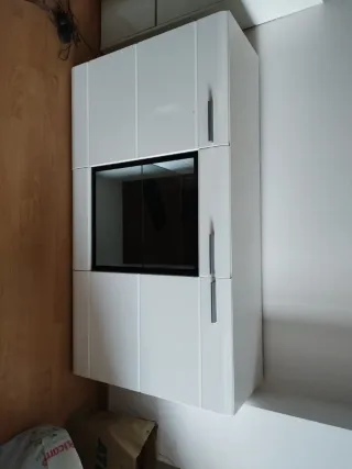Se venden dos muebles blancos con puerta y cerradura. - Cada uno tiene un estante que se puede cambiar de altura - Diseño moderno y funcional. - Acabado en color blanco. 1 x 20€ 2 x 35€