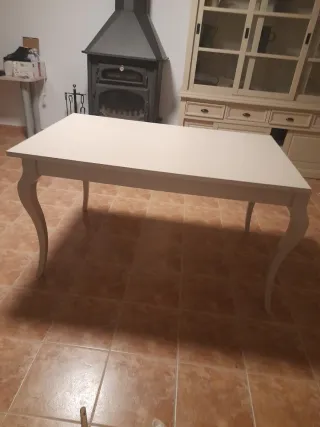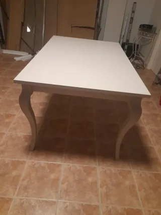 Mesa extensible de madera en color blanco, ideal para cualquier comedor o cocina. Se vende por mudanza. - Diseño elegante con patas curvas. - Ampliable para mayor capacidad.
