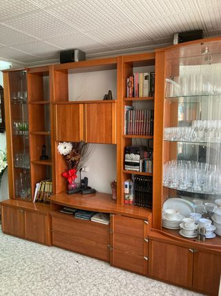 Mueble de salón de madera en perfecto estado. Cuenta con puertas de cristal y amplios compartimentos. - Diseño elegante y funcional. - Acabado en madera de alta calidad.