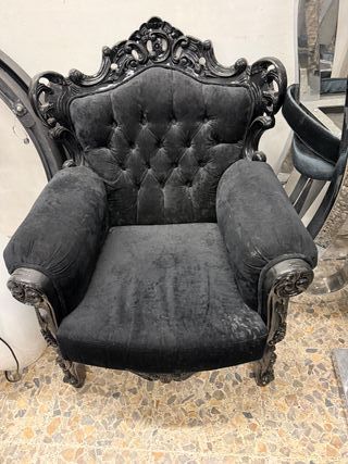 Sillón antiguo terciopelo negro