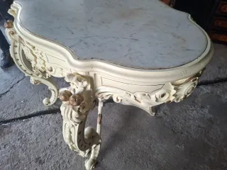 Elegante recibidor con un diseño único. Pieza única, exclusiva. - Fabricado en madera noble - Tallas hornamentales - Superficie - Acabado en tonos dorados y blancos.