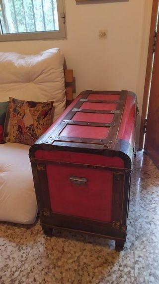 Baúl de madera con herrajes. Restaurado en pintura. Antigüedad de unos 30 años. medidas: 55 cm de largo 50 cm de alto 38 cm de fondo