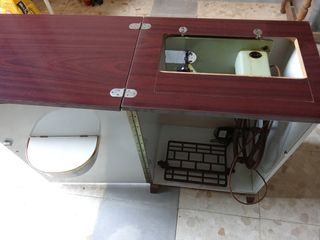 Preciosa máquina de coser antigua. Ideal para decoración o coleccionistas. - Mueble de madera con un acabado elegante. - Presenta ligeras señales de uso, lo que le da un encanto único. - Perfecta para darle un toque vintage a tu hogar.