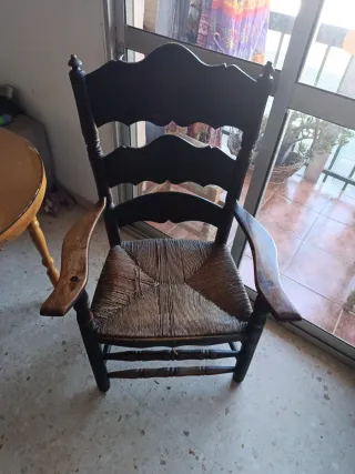 Urge vender sino se la doy mi cuñado Silla antigua con un diseño clásico y elegante, perfecta para añadir un toque de estilo a cualquier espacio. - Estructura de madera robusta. - Asiento tejido a mano con fibras naturales.