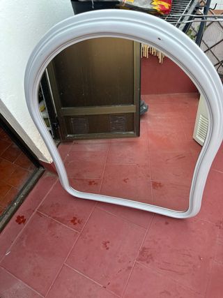 Preciosa pieza de época. Es un espejo antiguo con marco de madera. - Marco en buen estado, con pátina de pintura blanca. - Espejo de cristal en buenas condiciones. - Ideal para darle un toque vintage a tu hogar.