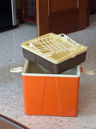Nevera vintage en buenas condiciones. - Diseño clásico en dos tonos. - Asa superior para facilitar el transporte.